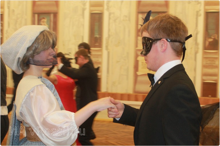 Феерия началась с традиционного полонеза, затем таинственные герои в масках закружились в бранле, польке и вальсе. Как раннее было заявлено организаторами, тема бала в этом году получила название "Арка времени", объединившая историю Руси, эпоху дворцовых переворотов, 19 век и 20 столетие России. Так, гостями карнавала стали прелестные фрейлины, среди которых оказалась графиня Екатерина Воронцова-Дашкова. Рядом томно обмахивается веером то самое "чудное мгновенье" Пушкина Анна Керн.
