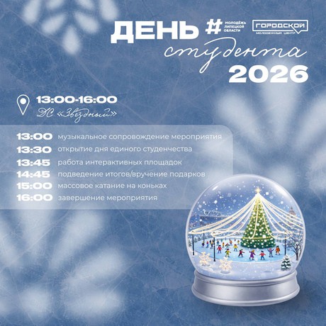 С 13:00 до 16:00 на площадке Дворца спорта «Звездный» пройдет праздник на льду с квестом, сюрпризами, подарками и бесплатным катанием на коньках для студентов и Татьян.
