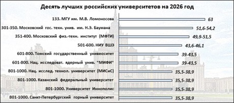 Ни один из российских вузов не обнаруживается в первой сотне рейтинга. В последний раз наш университет попадал туда два года назад. Таким учебным заведением оказался тогда МГУ им. М.В. Ломоносова. В рейтинге 2024 года он занимал 95-е место. После чего в течение последующих двух лет флагман российского образования теряет позиции – в 2025-м году – 107-е место, в 2026-м году – 133-е место.