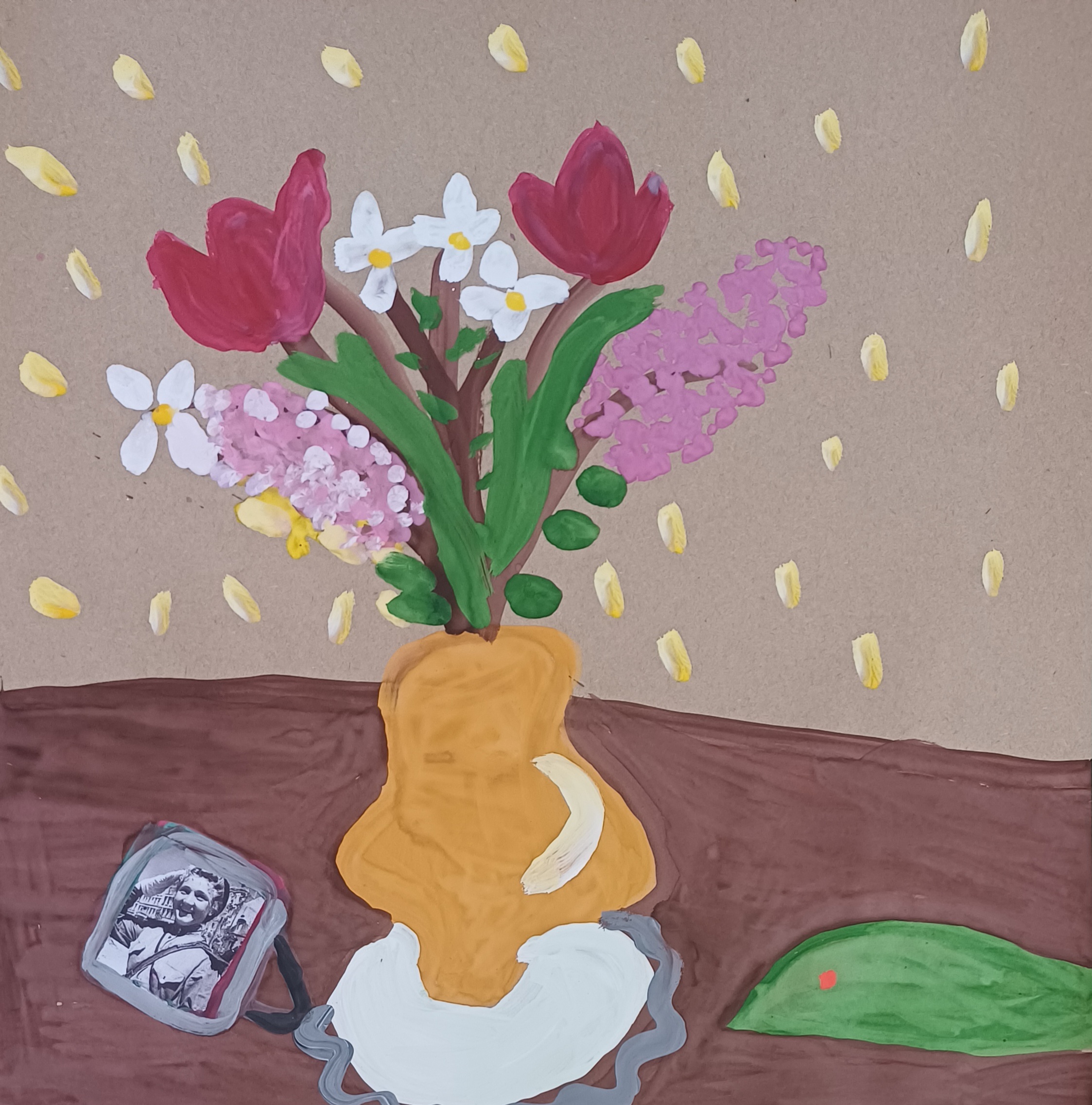 Описание: Каждый год на 9 мая мы украшаем стол сиренью и рассматриваем военные фотографии, сохраняя память о тех, кто защищал нас.