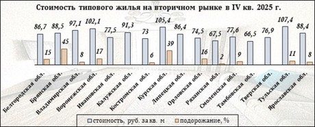 За год типовые квартиры подорожали на 39% или почти на 38 тыс. руб. В конце 2024-го года их стоимость была ниже 100 тыс. руб., тогда как за октябрь-декабрь 2025 года она составила 134 тыс. руб.