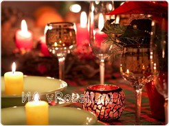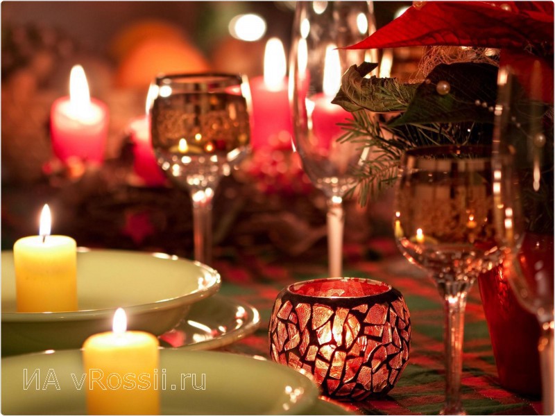 Аристократичным дополнением к убранству станут элегантные подсвечники со свечами. Если вы не решаетесь зажигать много свеч на столе, стоит отдать предпочтение плавающим свечам. В этом случае на стол ставится элегантная ваза с водой. В любом случае, чем больше зажженных свечей или гирлянд будет на столе и возле него, тем лучше.